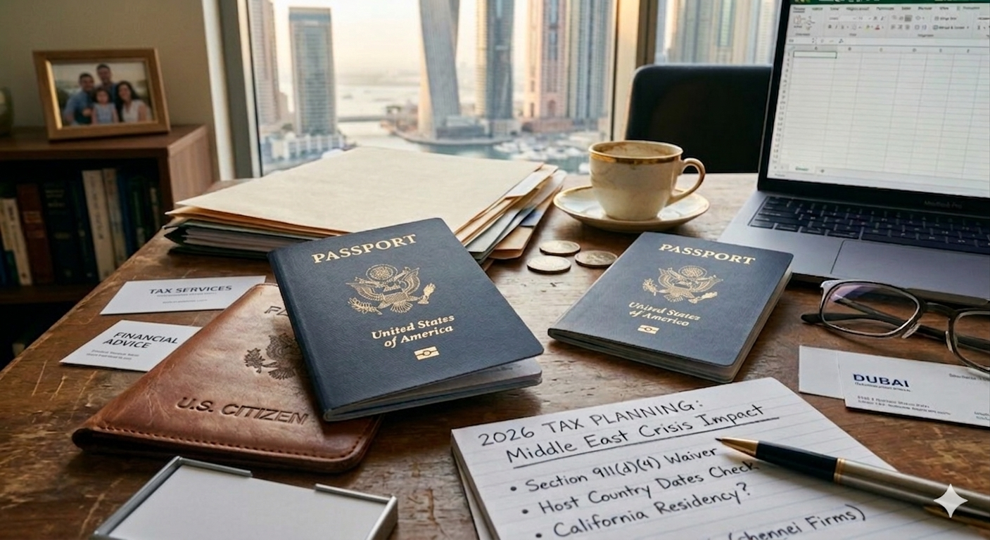 Living and working in the Middle East can feel like you’ve stepped into a different life entirely. Then something happens a security concern, a geopolitical flare up, a corporate decision and suddenly you’re on a flight back to the U.S. with bags hastily packed and a head full of unanswered questions. Once everyone is safe and the adrenaline wears off, the quiet question that usually shows up is: “What is this going to do to our taxes?”